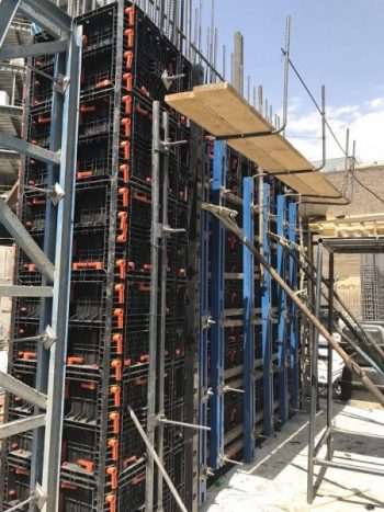 PIMI is trying to have an interview with the manufacturer of these moulds, when all the names will be disclosed for further references.The following photo gallery shows different views of under construction project with Iranian made cement and concrete casting moulds. The orange parts are locking-unlocking handles of the moulds.